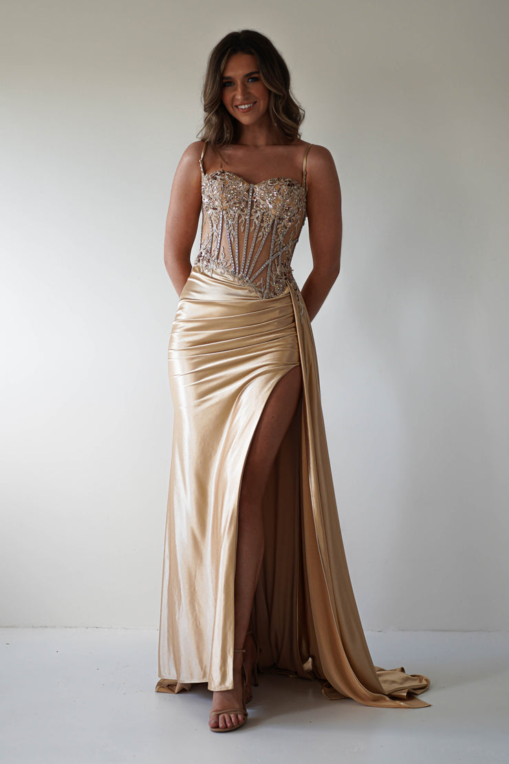 Diva Embellished Corset Gown | Gold