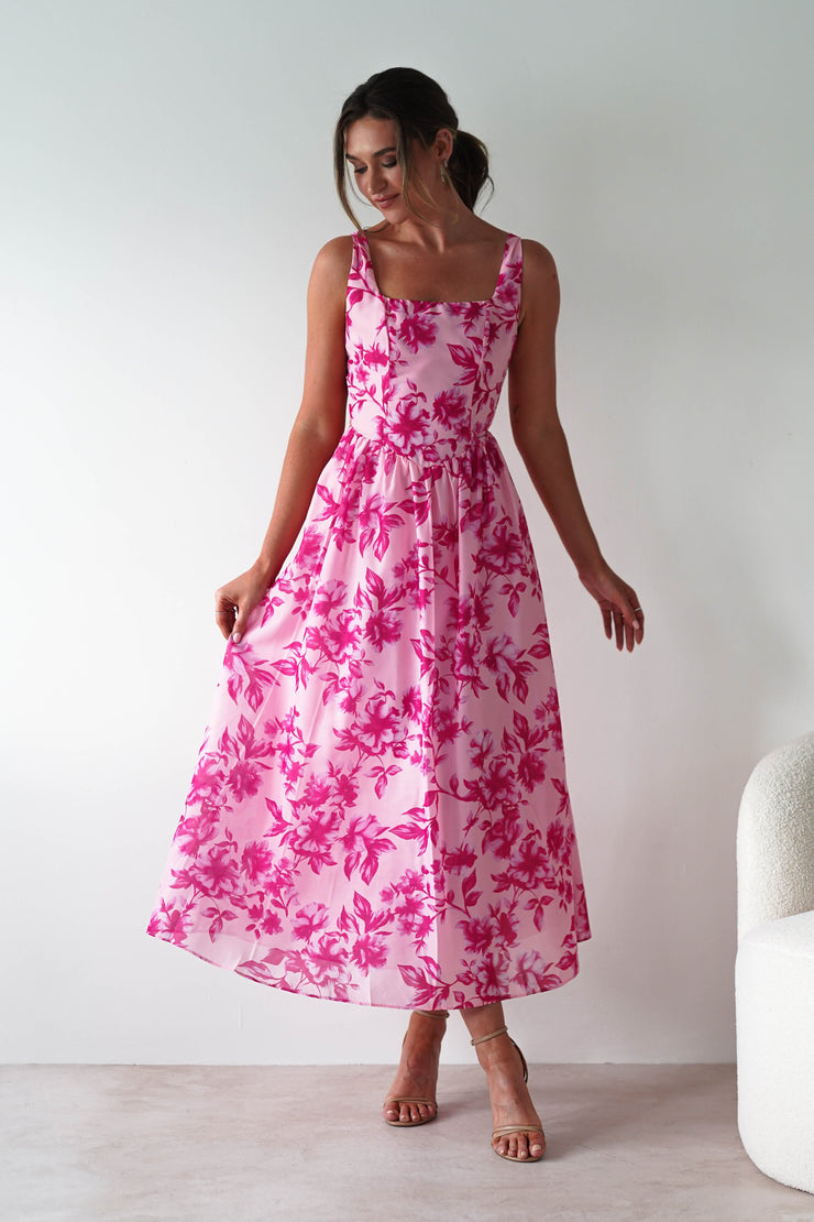 Maisie Floral Skater Maxi Dress | Pink