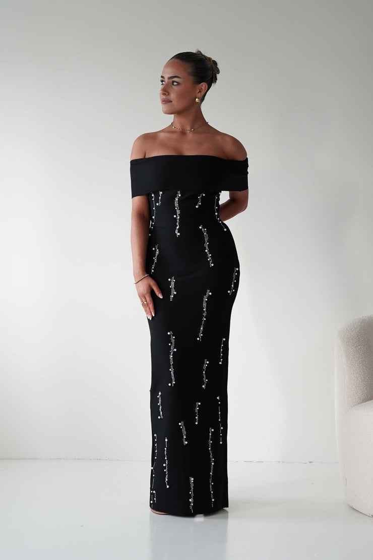 Margot Pearl Embellished Bandage Maxi Dress | Black