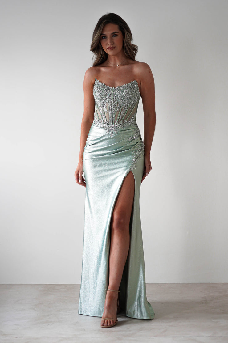 Caspian Verziertes Bodycon-Kleid | Hellgrün