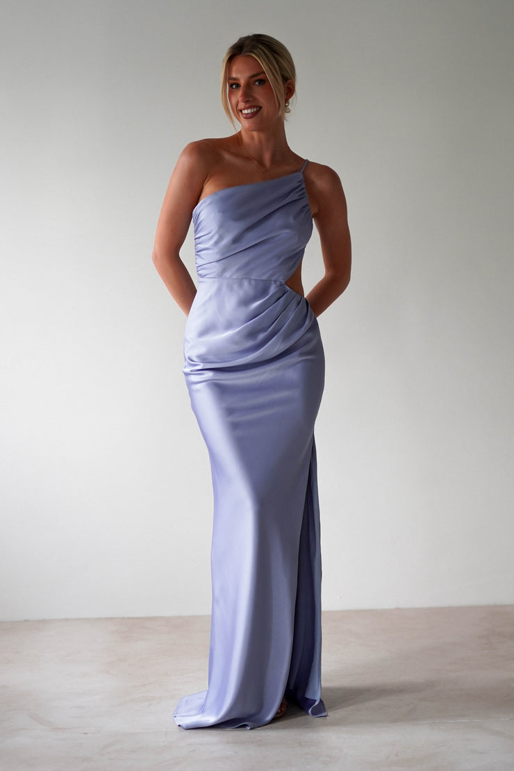Lyra Weiches, Mattes Satin-Maxikleid | Immergrünblau
