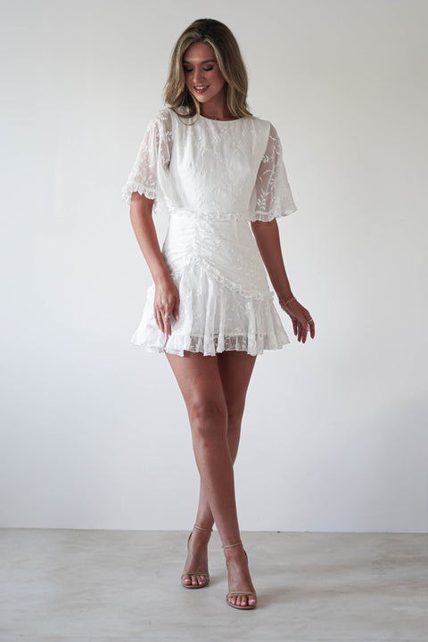 Amélie Boho Lace Detail Mini Dress | White