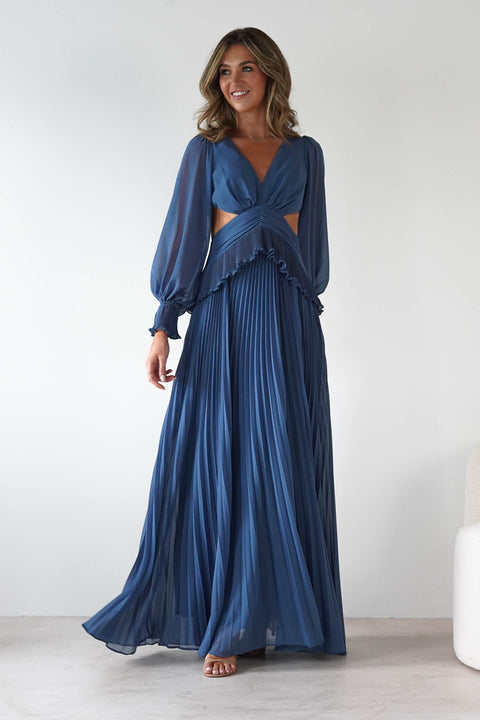 Middleton Pleated Maxi Dress | Slate Blue