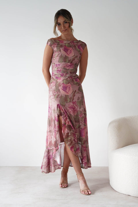 Salma Soft Matte Satin Midaxi Dress | Blush Pink