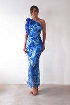 Genie Ruffle Printed Maxi Dress | Blue