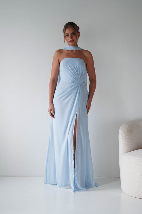 Marcel Strapless Chiffon Maxi Dress | Blue
