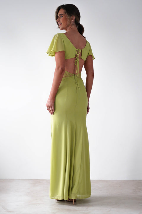 Preston Flutter Sleeve Maxi Dress | Lime Green