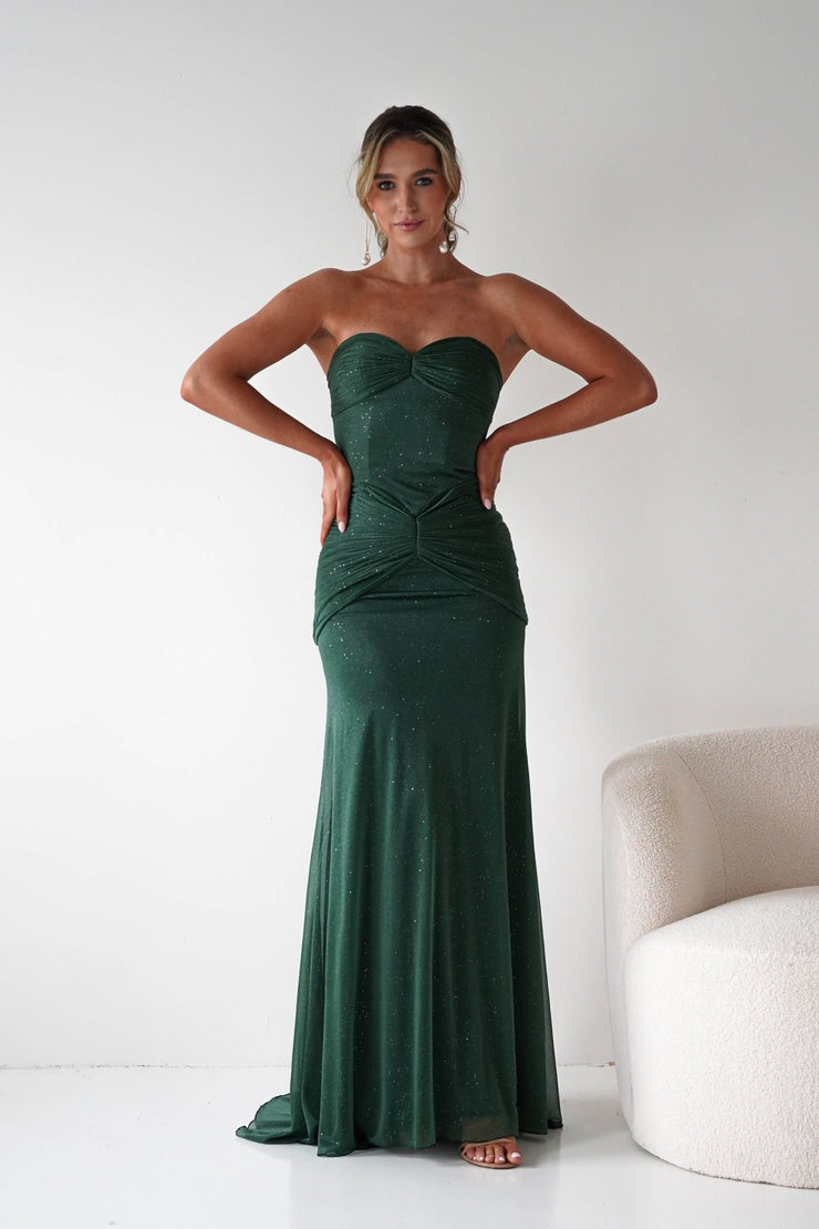 Nicola Strapless Glitter Gown | Green