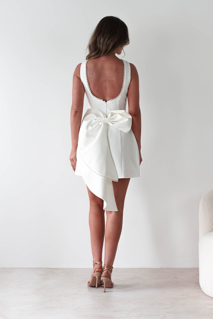 Maria Pearl Bow Detail Mini Dress | White