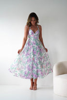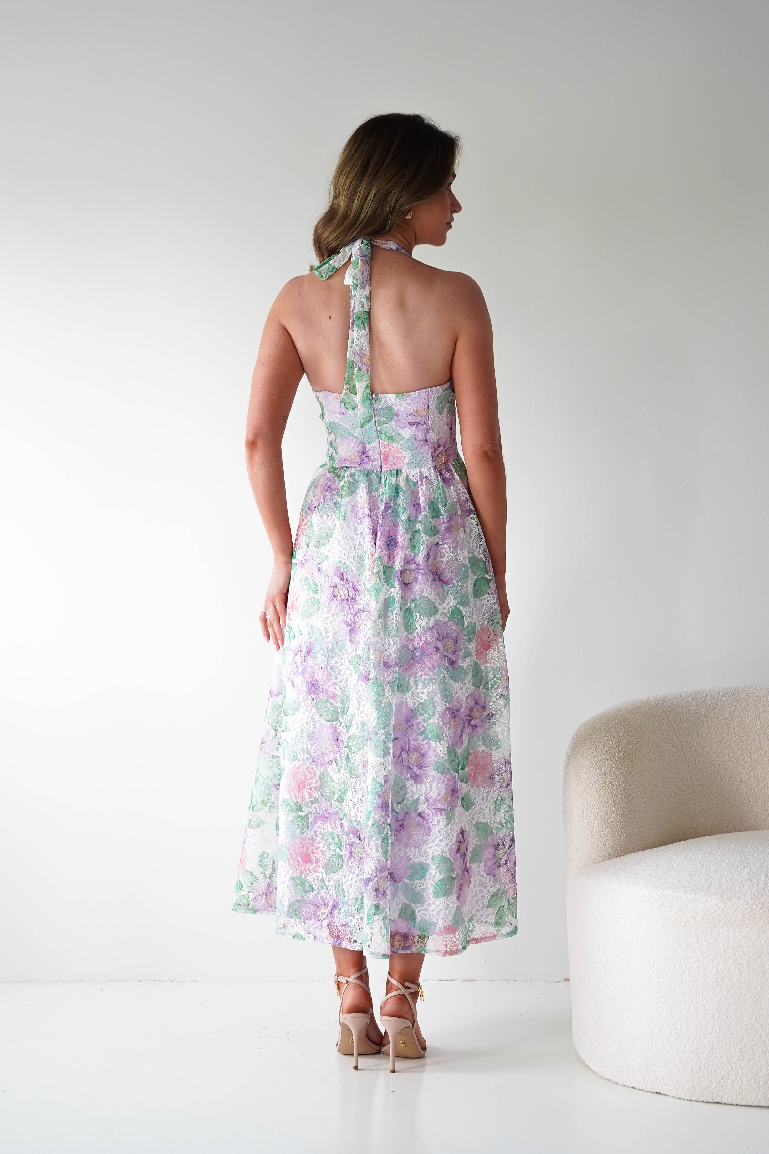 Millie Floral Lace Halter Neck Midi Dress | Lavendar