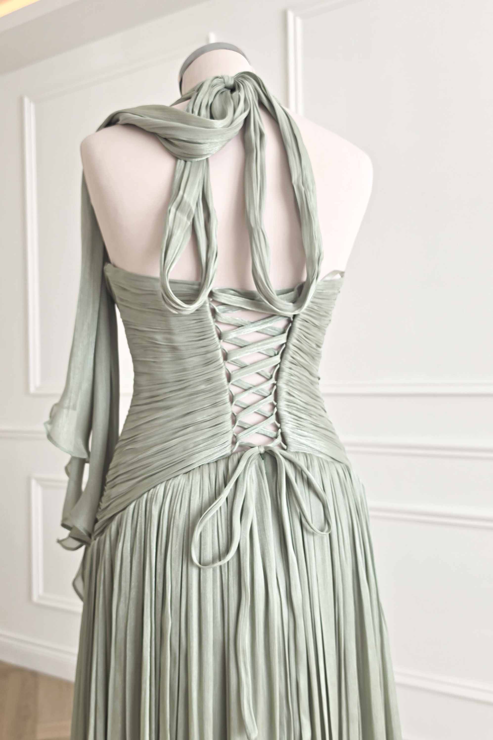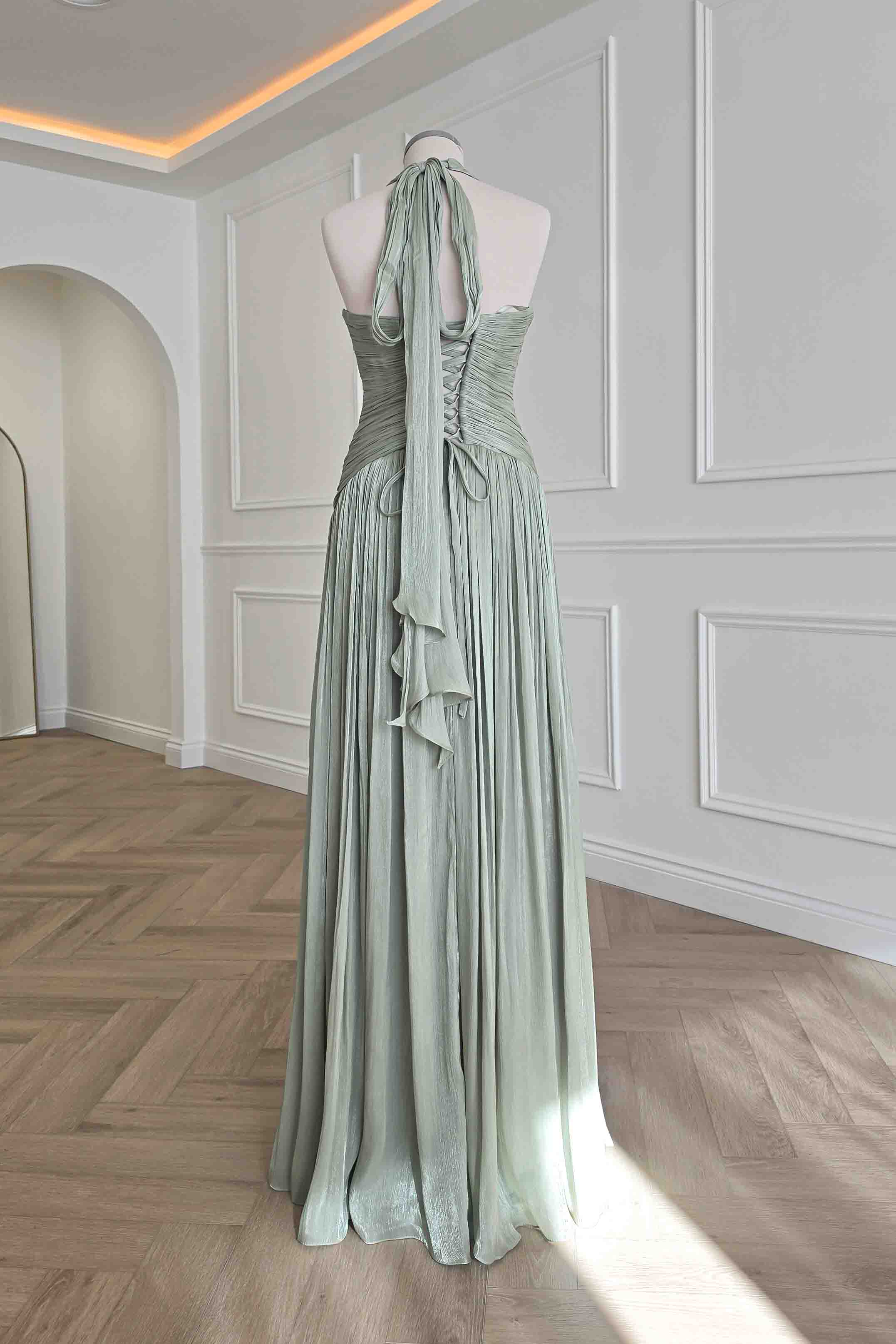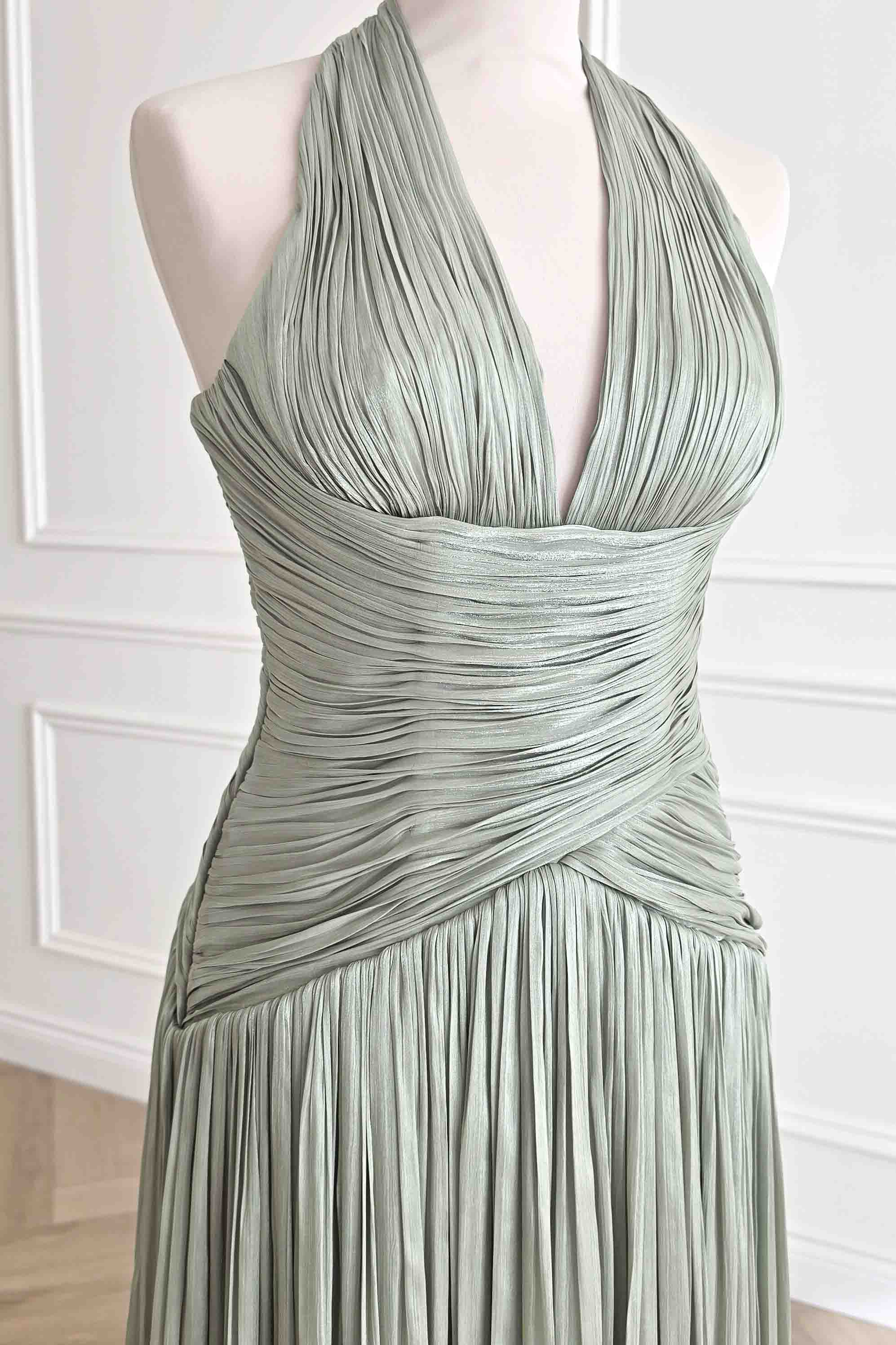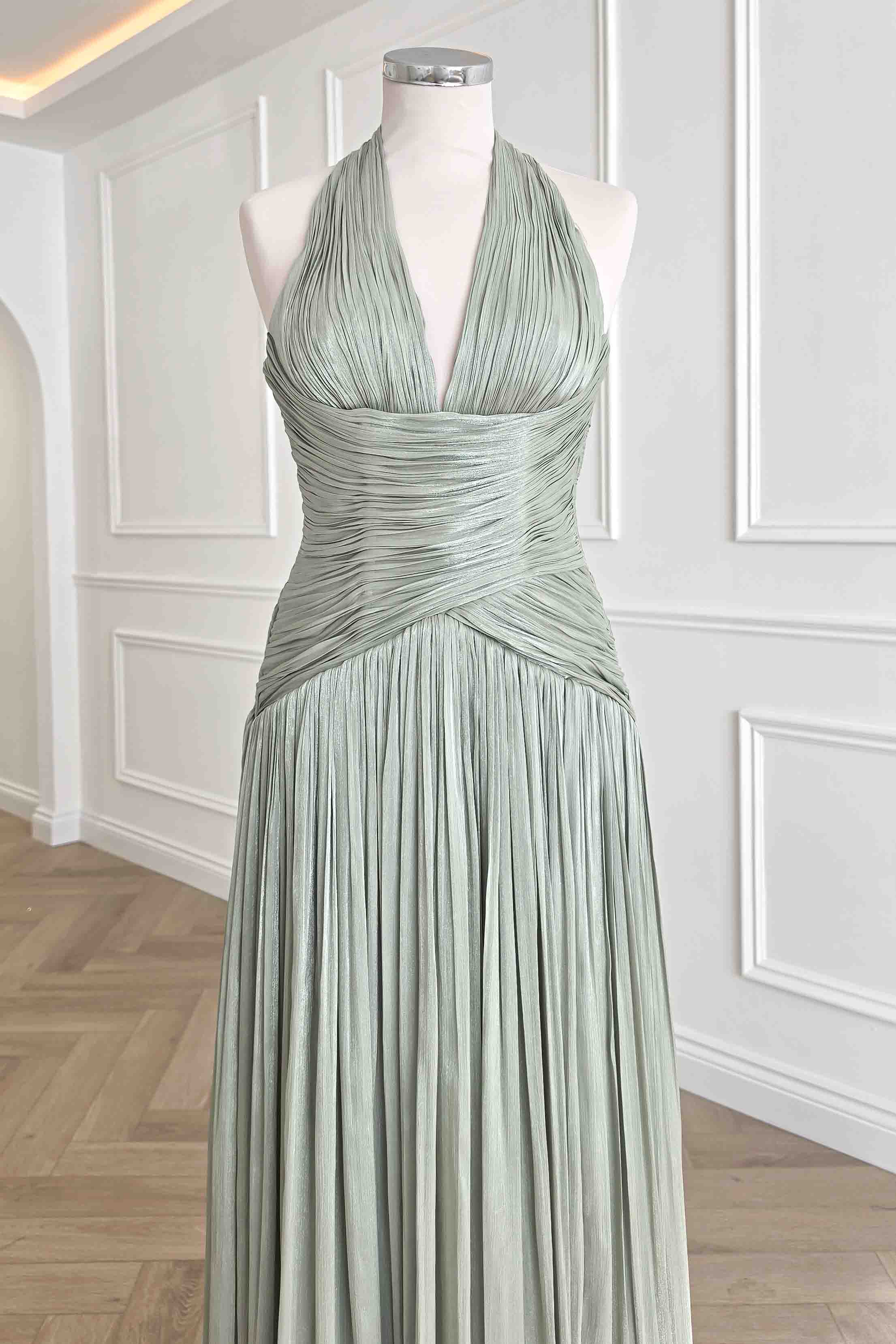 Sharelle Pleated Luminescent Maxi Gown | Sage