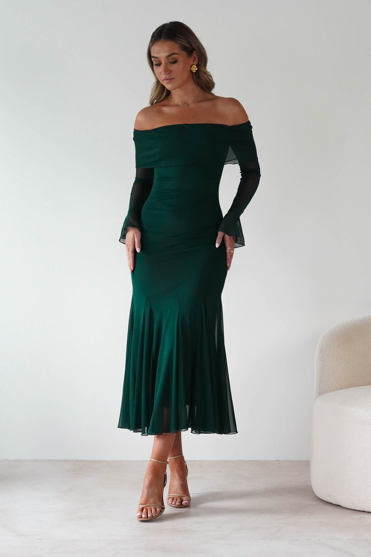 Presley Mesh Long Sleeve Midaxi Dress | Forest Green