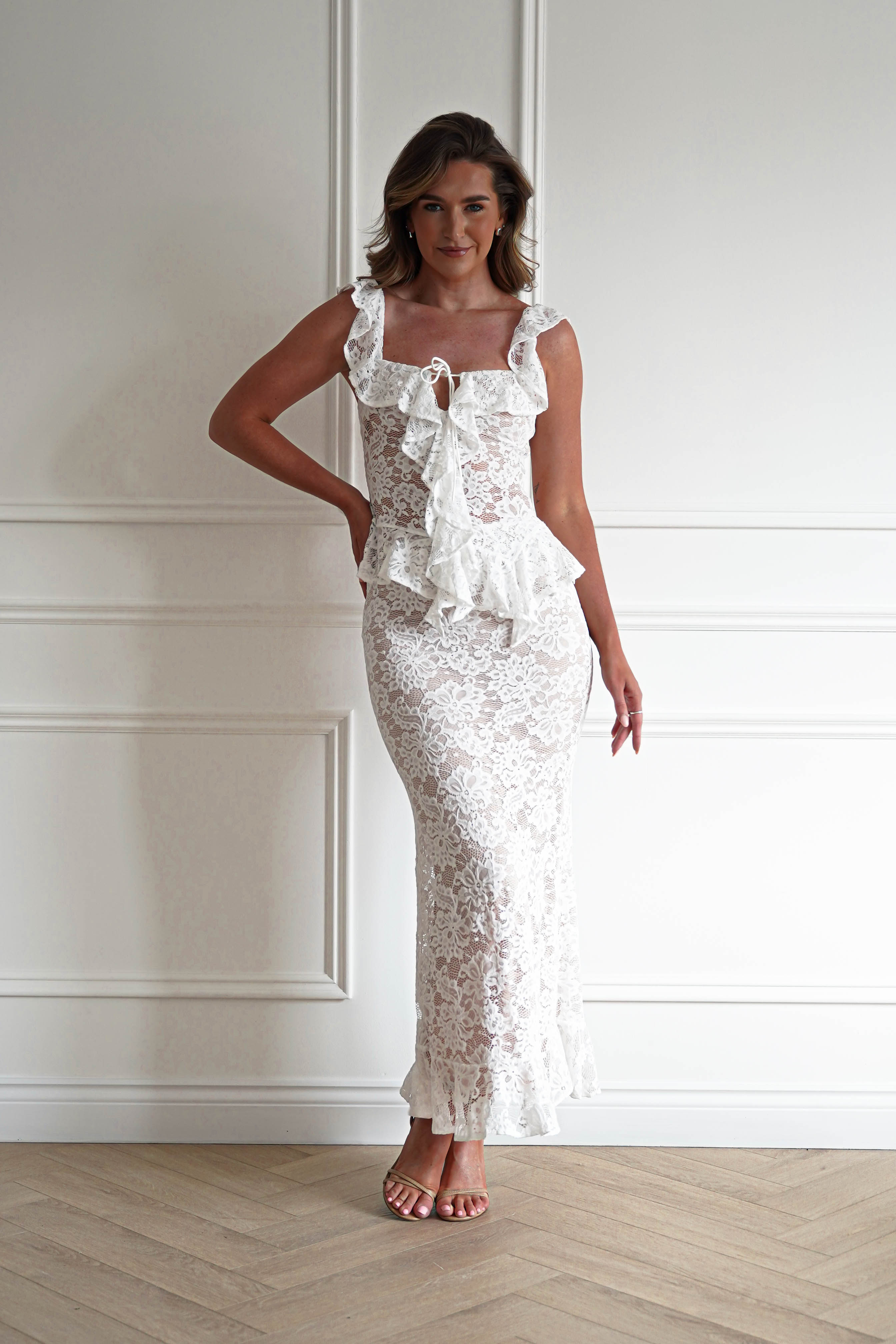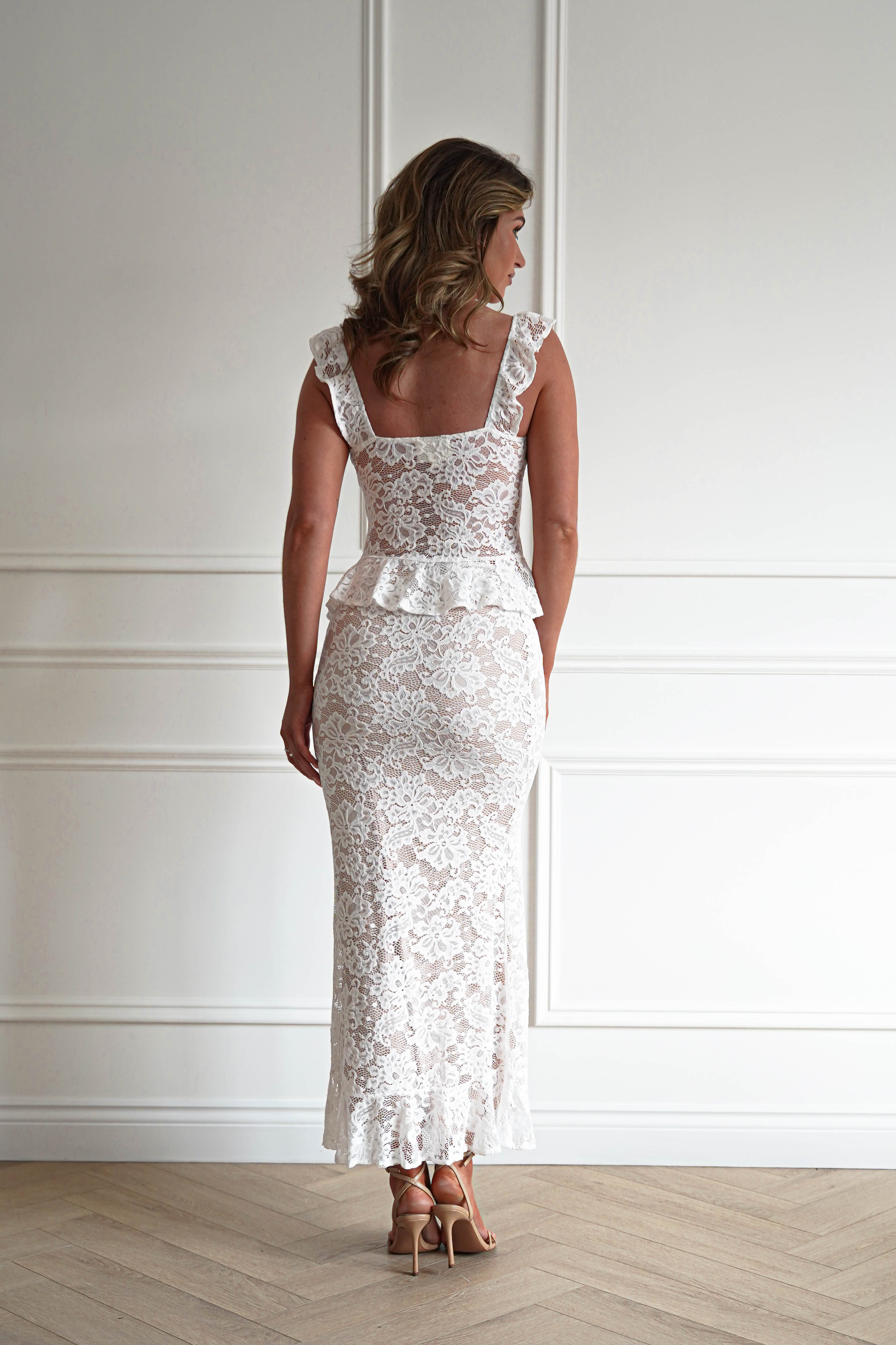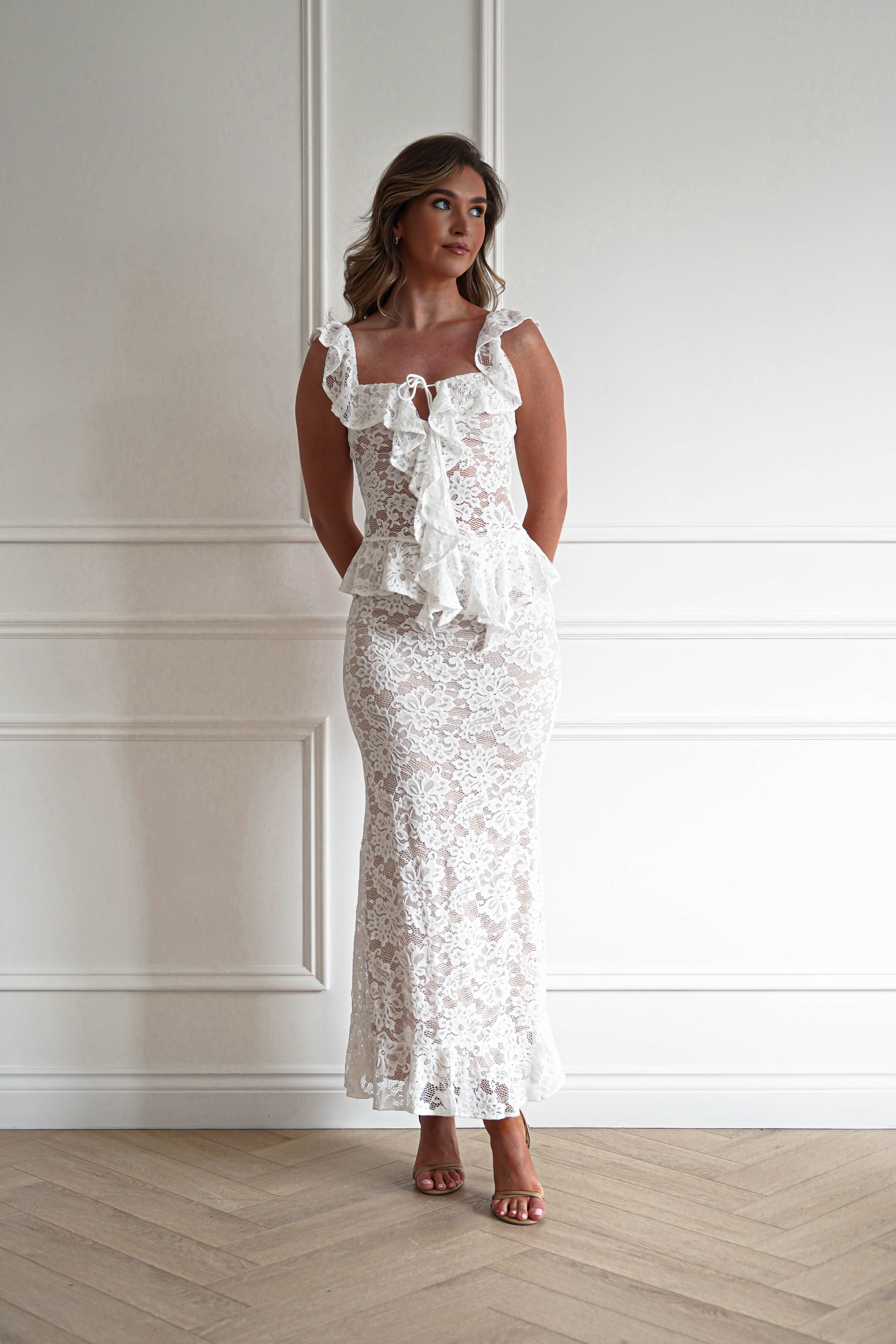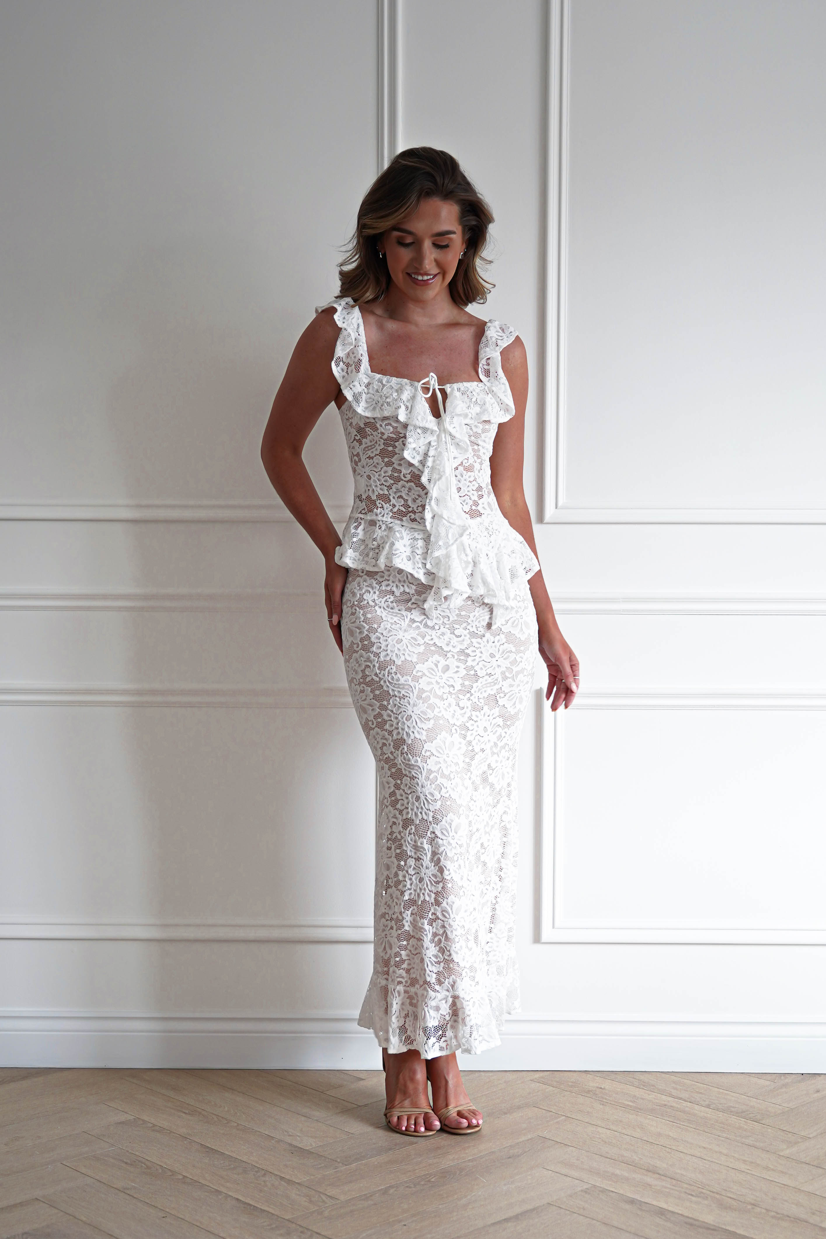 Hailey Lace Top and Skirt Set | Ivory/Nude