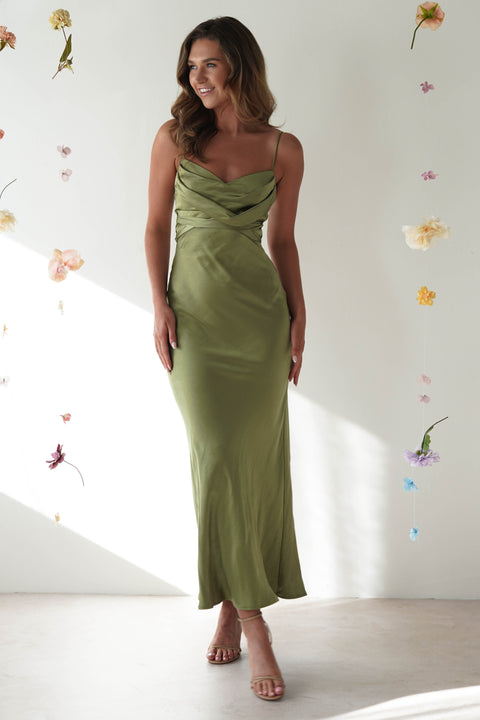 Grace Weiches Satin-Maxikleid | Olivgrün
