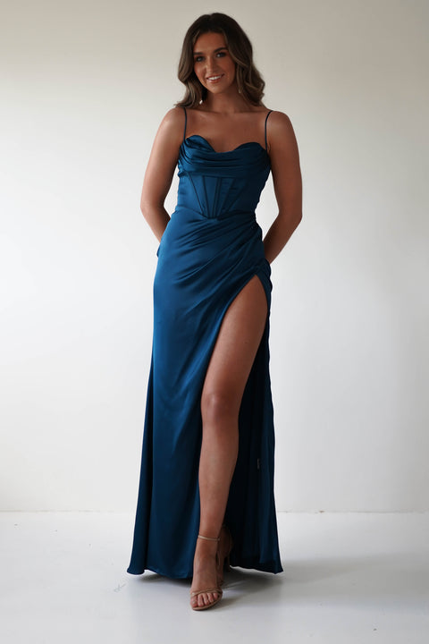 Julianne Korsett Satinkleid | Französisches Marineblau