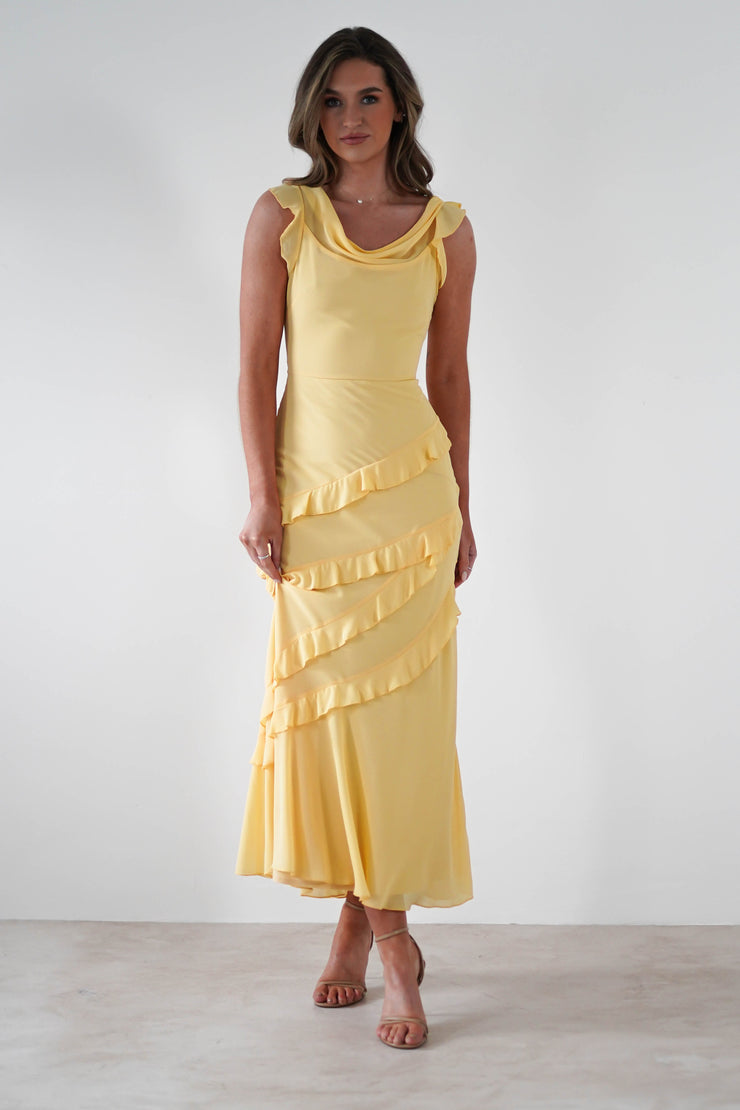 Lauretta Rüschen-Chiffon-Maxikleid | Gelb
