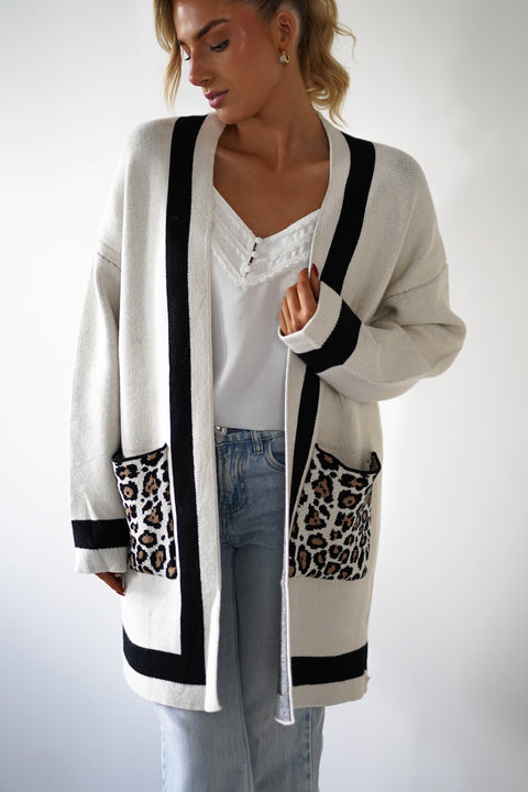 Tadriah Leopard Print Detail Cardigan | Oh Hello Clothing | ONE SIZE (8 - 16)