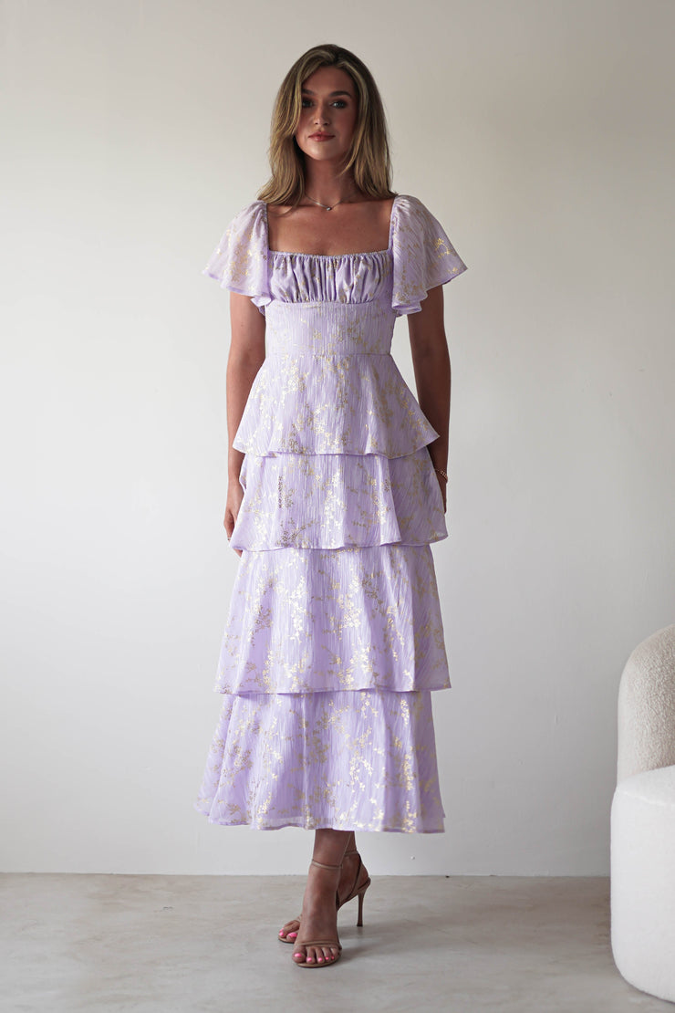 Mirielle Gold Detail Ruffle Maxi Dress | Lilac