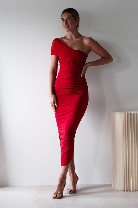 Sania Bodycon Midi Dress | Red | Oh Hello Clothing | XS (6)