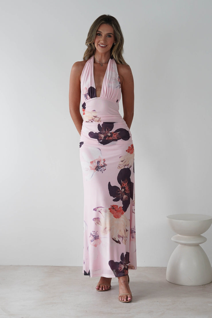 Rhoda Floral Print Mesh Maxi Dress | Light Pink