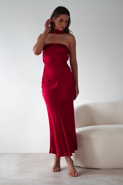 Alice Soft Satin Maxi Dress | Dark Red