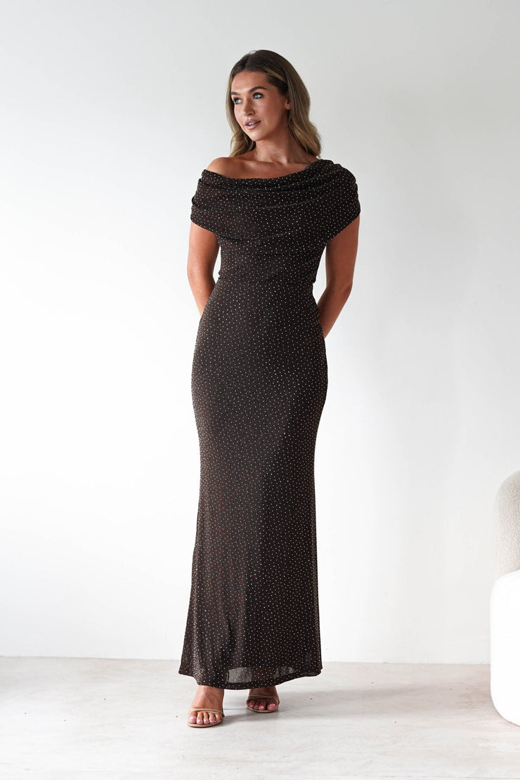 Pascal Bodycon Embellished Maxi Dress | Brown