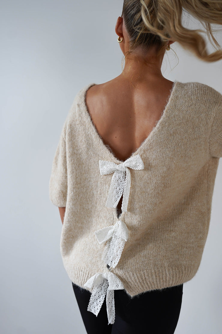 Lila Lace Bow Back Jumper | Cream