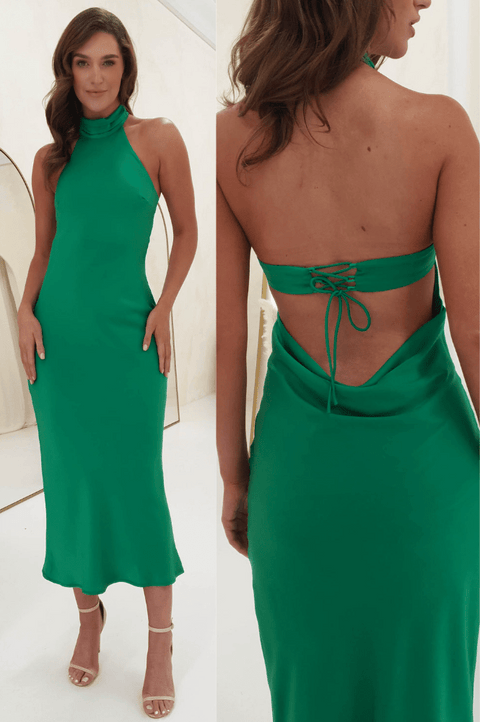 Pamela Halter Neck Maxi Dress | Green