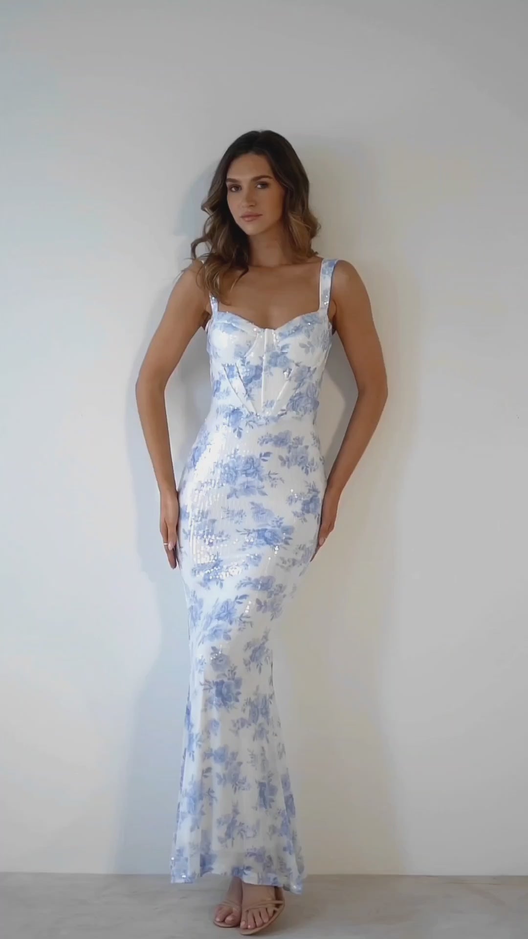 Lynelle Floral Sequin Maxi Dress | Blue/White