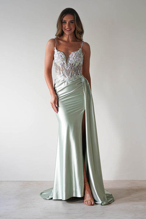 Caspian Embellished Bodycon Gown | Light Green